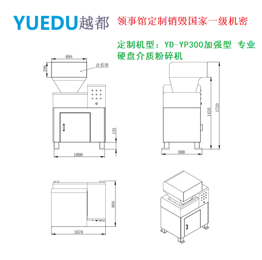 ―― 越都漏斗式YD-YP300系列加強型大容量硬盤專用碎紙機,線路板銷毀機 硒鼓粉碎機 電腦主板保密銷毀