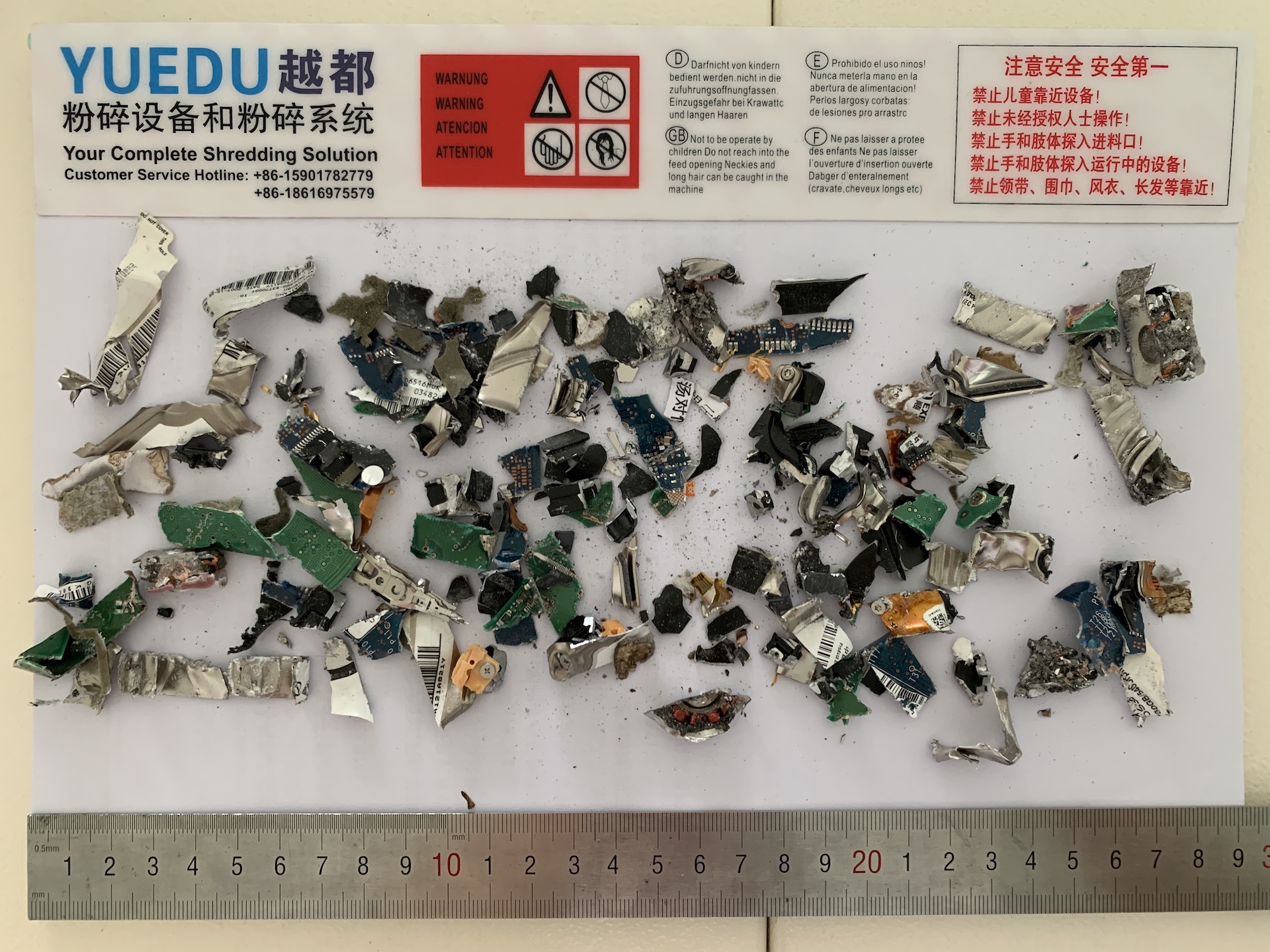 碎紙效果 | 0.98*4.8cm粉末狀;可碎硬盤、線路板介質(zhì)、光盤、U盤等電子存儲介質(zhì)產(chǎn)品; (可定制其它形狀,如0.3*0.3mm, 0.8*3cm, 0.5*1cm粉末狀或條形等;成本增加) | |