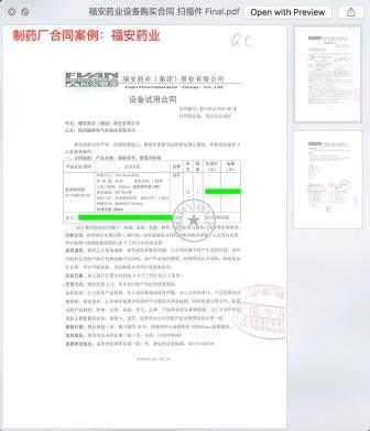 重慶越都碎紙機銷售辦事處與福安藥業集團所簽訂的設備試用合同案例: