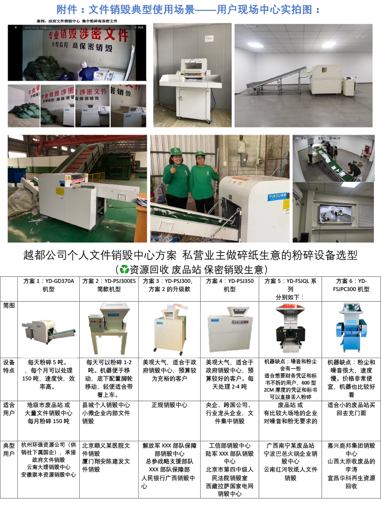 典型用戶 | 杭州環強資源公司(供銷社下屬國企),承接政府文件銷毀 云南大理銷毀中心 安徽聯豐資源銷毀中心 | 北京順義某醫院文件銷毀 廈門翔安陳建發文件銷毀 | 解放軍XXX部隊保障部銷毀中心 總參戰略支援部隊XXX部隊保障部 人民銀行廣西銷毀中心 | 工信部銷毀中心 陸軍XXX部隊銷毀中心 北京市第四中級人民法院銷毀室 西藏拉薩國家電網銷毀中心 | 廣西南寧某廢品站 寧波巴邑火鍋企業銷毀中心 云南紅河牧紙人文件銷毀 | 嘉興鹿邦集團銷毀中心 山西太原收廢品的李濤 宜昌華科再生資源回收 |